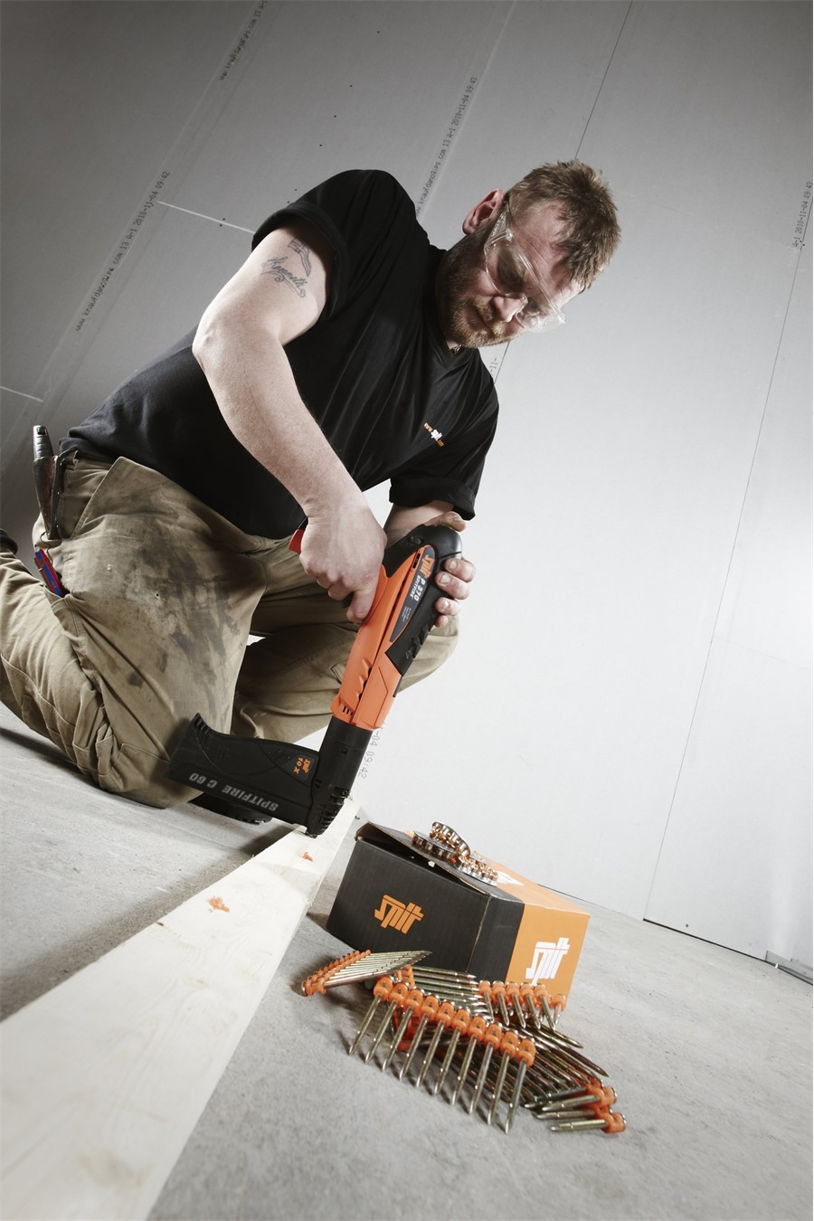 אקדח מסמרים בטכנולוגיית תחמיש לקיבוע עץ ומתכת לבטון ומתכת