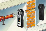* משדר ומקלט מאפשרים זיהוי מכשולים בקיר בעובי עד 150 ס"מ