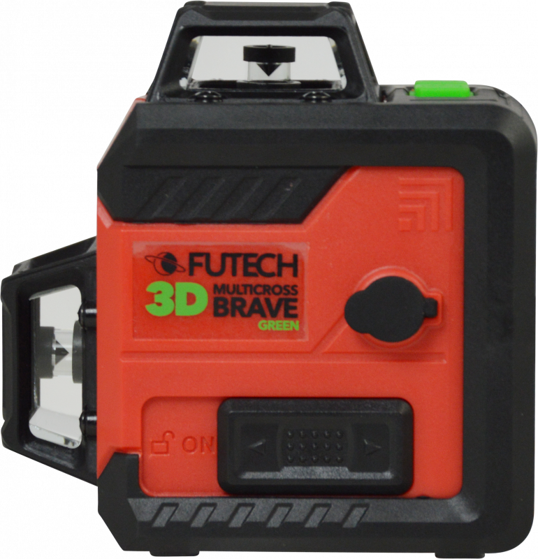 לייזר קווים קרניים ירוקות בפריזמה תלת-מימדית, בעל קרן אופקית היקפית ושתי קרניים אנכיות היקפיות היוצרות בנוסף נקודות "פיון" / צלב עליון ותחתון וכן 4 זוויות של 90° כ"א.