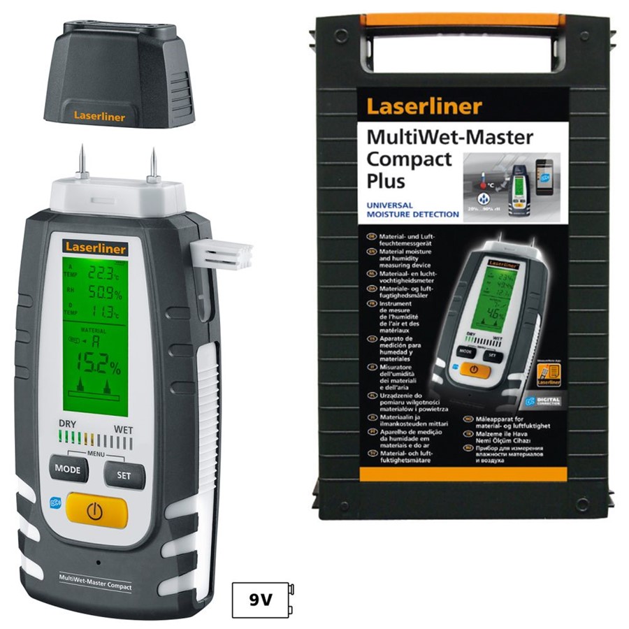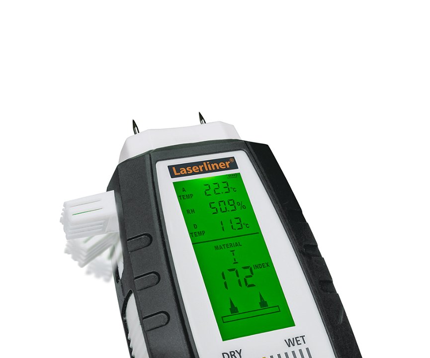 מכשיר המשלב אפשרות מדידה בסריקה או בנעיצה קישורית BLUETOOTH לאפליקציית LASERLINER (חינמית) להעברה ושמירת הנתונים נתונים של 108 סוגי עץ ו 31 סוגים של חומרי בניין מוזנים מראש למכשיר מסך LCD מואר חיישן מדידת לחות סביבתית נשלף טווח מדידת לחות 20%-90% לחות טווח מדידת טמפרטורה של מינוס 10 עד פלוס 60 מעלות צלזיוס