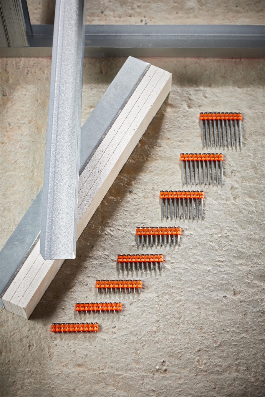 מסמרי HC6 מתאפיינים בסרט פלסטי כתום לזיהוי קל