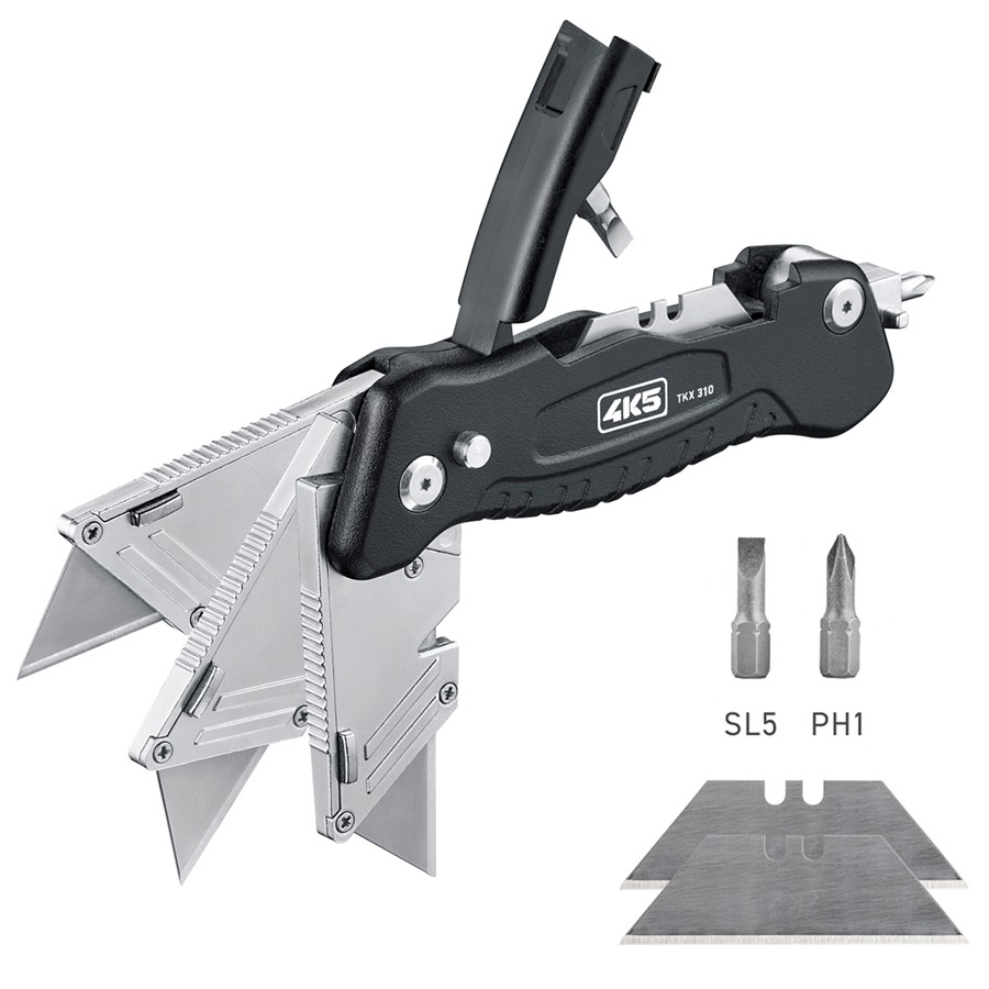 סכין מתקפלת רב תכליתית עם להבים טרפזים להחלפה, מחזיק ביטים וביטים