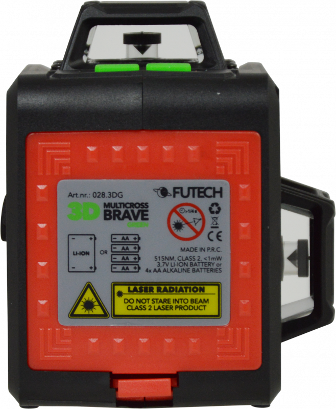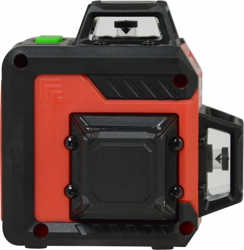 לייזר קווים קרניים ירוקות בפריזמה תלת-מימדית, בעל קרן אופקית היקפית ושתי קרניים אנכיות היקפיות היוצרות בנוסף נקודות "פיון" / צלב עליון ותחתון וכן 4 זוויות של 90° כ"א.
